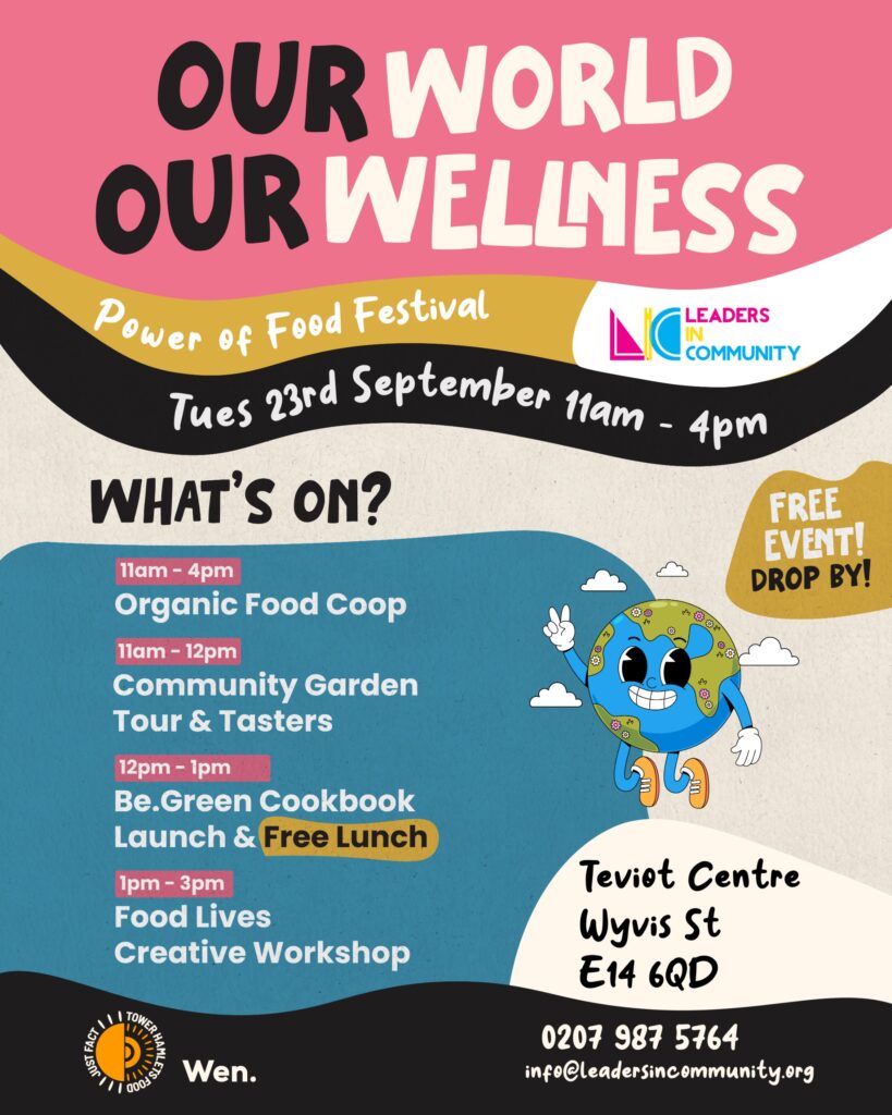 Leaders in Community (LiC) is honoured to be a partner in the Tower Hamlets Power of Food Festival (POFF – 18th – 28th September 2025). Organised by the Women’s Environmental Network’s (Wen) JustFact Programme.